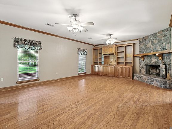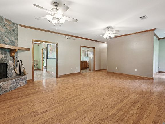 Welcome to your own slice of paradise, where pride of ownership shines at every turn. Nestled on approximately 2 private, wooded acres in the heart of Pride, this property offers the perfect blend of peace, serenity, and space to enjoy the outdoors. Sip your morning coffee or wind down with an evening nightcap from the charming covered front porch, all while taking in the tranquil setting. Step inside to a warm and inviting family room featuring a cozy fireplace, custom built-ins, and beautiful wood flooring. Sunlit windows fill the home with natural light, creating a bright and airy atmosphere. The chef’s kitchen boasts a center island with stainless steel sink, gas stove, breakfast bar seating, and a cheerful breakfast area with views of the lush yard and trees. A glass-paned door opens to the covered back patio—an ideal spot for evening relaxation, al fresco dining, or entertaining with friends. The primary suite is a retreat of its own, offering a double vanity, large soaking tub, and separate shower for a spa-like experience. All bedrooms include walk-in closets and no carpet! A dedicated office adds flexibility for working from home or hobbies. Freshly painted throughout this home is ready to move in! Outdoors, enjoy a 2-car carport and patio, plus a separate shop with an enclosed space - perfect for projects, equipment, or storage. With a durable metal roof, low-maintenance vinyl siding, and thoughtful updates, this home has been lovingly cared for and built to last. If you’re seeking privacy, serenity, and a home that offers both comfort and functionality, 15115 Peairs Road is a must-see.