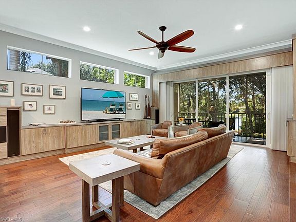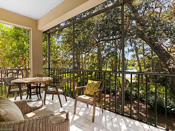 Wow. Stunningly updated end unit!! Move right in to this beautiful 3BR home with wood-look tile throughout, high ceilings, all-new cabinets and quartz countertops, stainless appliances, built-in entertainment center and dry bar, remote-control blinds, custom closets, impact-rated sliders, and stylish furnishings. 3rd bedroom has Murphy bed and built-in desk--a great home office without losing a guest bedroom! West-facing lanai is shaded by trees but still offers gorgeous views of sunsets and the lake, where birds and otters can often be seen. Bay Forest's beautiful grounds include 2+ miles of paved trails and a boardwalk through a preserve to the back bay. A fitness center, library, clubhouse and enviable pickleball, tennis, and bocce courts round out the community-wide amenities. This friendly community is close to Barefoot and Delnor-Wiggins beaches, and convenient to North Naples and Bonita Springs shopping and restaurants--a secluded spot in the middle of it all!
