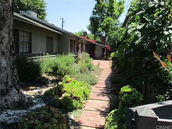 STUNNING CURB APPEAL!!! 1950's Mid Century design reminiscent of "Byrd" Architecture - with "bird houses" for 3 at the front roof ridge, oversized diamond pane bay windows on each side of the vintage style front door, decorative use of brick across the front that contributes to the classic style. ALL surrounded with "exotic" landscape on oversized lot with an Artful horizontal slatted wood fencing across front lot line. The interior features include matching knotty pine paneling, cabinetry & wainscoting, built-in's in formal dining areas & hallways, hardwood floors, crown molding, and more. There are Two 1 bedroom/1 bath units and a 2-bedroom 1 bath Owner's unit at the back of the property that features a large living room with wood paneling, a floor to ceiling used brick fireplace with generous hearth, built-ins, section of open beam ceiling and sliding glass doors to large covered patio and rear yard area. There are 3 enclosed single garages accessed from the rear alley and provide a privacy wall for the back yard area. Short walk to transportation, Sepulveda Basin Recreation area with acres of parks, a small lake and a Wildlife Reserve! Convenient to the 101 and 405, Costco, Target, restaurants, and major employment centers!