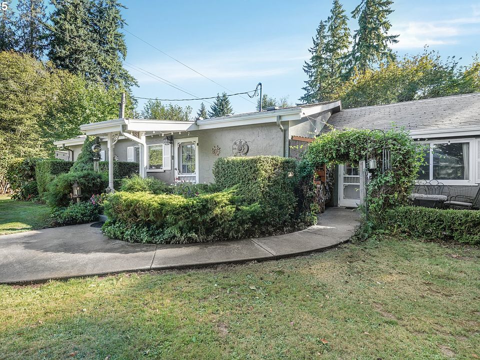 Experience peaceful country living at its finest in this beautiful 4-bedroom, 2-bath home on 2.5 serene acres surrounded by majestic shade trees. The immaculately maintained grounds feature meandering walking trails, a seasonal creek that runs through the property in winter, and a charming footbridge that adds to the picturesque setting. Enjoy outdoor living with a spacious deck and patio, raised garden beds, two storage sheds, and an above-ground pool that all stay with the home. There’s plenty of room to roam, relax, and watch the local wildlife in this peaceful natural retreat. Inside, the home offers a large living room with vaulted, beamed ceilings and a cozy wood-burning stove. The dining area opens to the deck through sliding doors, creating a seamless indoor-outdoor flow perfect for entertaining. The kitchen sits at the heart of the home, and a dedicated office provides space for remote work or hobbies. The primary suite includes a private bath and double closets, while three additional bedrooms, a full hall bath, and a laundry room complete the interior layout. An RV parking pad with plug-in adds convenience, and despite the country setting, you’re just 10 minutes to shopping, dining, and I-5 access. Private, peaceful, and move-in ready, this property truly offers the best of Northwest living!