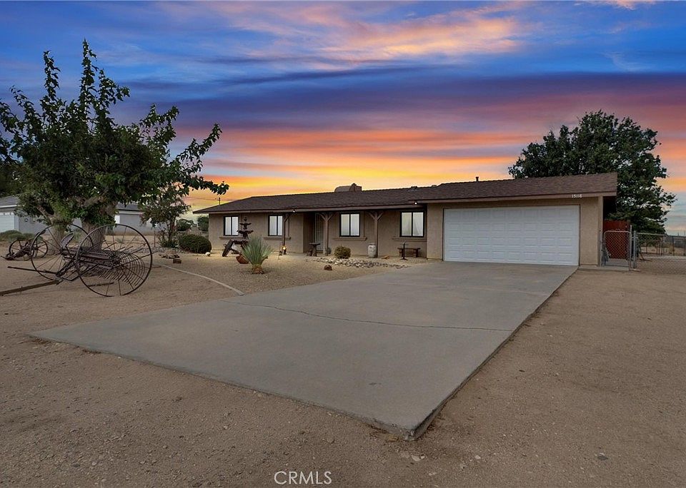Welcome to your serene ranch retreat in Hesperia, with breathtaking mountain and hill views in every direction! Situated on a flat, sprawling 43,710 sq ft lot, this charming single-story home offers 3 bedrooms, 2 baths, and approximately 1,458 sq ft of living space. From the moment you arrive, the inviting curb appeal shines with an extra-long driveway, rustic Western touches, and a peaceful setting. Step inside to a bright, open floor plan filled with natural light. The living room is the heart of the home, anchored by a large brick fireplace. It flows seamlessly into the dining room, highlighted by a lovely chandelier, and into the spacious family kitchen with freshly painted cabinetry, a breakfast bar, and a brand-new dishwasher. The master suite features direct patio access through sliding doors and a private bath with a walk-in shower. Two additional bedrooms are generously sized and share a full hall bath with a shower-in-tub. Recent updates include fresh paint, upgraded baseboards, ceiling fans throughout, a wall AC unit in the living room, and newer sliding doors. Outdoors, you’ll find multiple patios designed for relaxation and gatherings. Just off the living room, a covered patio with a ceiling fan creates a breezy, charming space perfect for family get-togethers. The fenced backyard also offers a manicured lawn, mature trees, and a professional irrigation system. A second patio, right off the master bedroom, is beautifully shaded by grapevines. Beyond the fenced yard, the property continues with a barn, chicken coop, and utilities already connected for water and electricity, ideal for anyone looking to keep animals. With its flat, usable acreage, this property is perfect for horses, RVs, additional vehicles, or even an ADU. All this in a tranquil setting, yet just minutes to main roads, shopping, dining, and entertainment. Don’t miss this versatile home with endless potential!