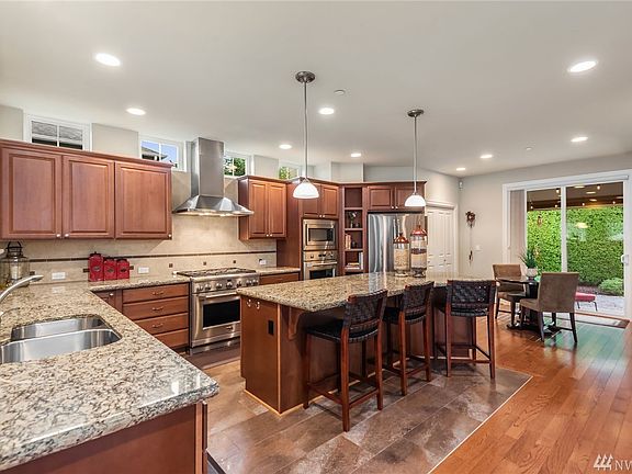 Stately Bentley home boasting luxe custom details. Masterful layout w/ lrg media rm, incredible rec rm/MIL suite w/ kitchenette. Elegant millwork, fixtures & finishes. Dazzling gourmet chef's kitchen for entertaining, huge island w/ seating. Massive master suite w/ soaking tub, 2 walk-ins. Sweeping front deck for sunrise coffee; covered patio, lush landscaping & fenced lawn. Bonuses: hi-end fire/security, 2-car garage, A/C. Ideal Bothell location w/ easy commute, Northshore schools, trails.