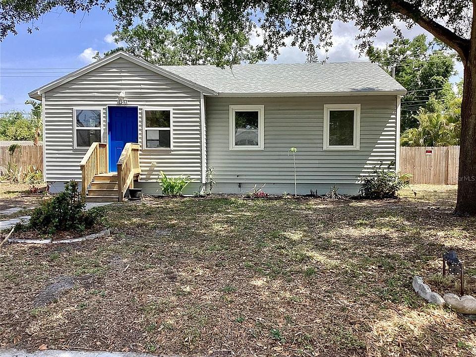 You’ve seen the rest in this price range...Now see the Best! This adorable and affordable 3 bedroom, 1 bath home has 953 sq/ft and is Move in Ready. The home has been completely updated in 2025 to include a New Roof, HVAC, Water heater, Garage doors, Stainless appliances, Nu Core LVP flooring, updated Kitchen, bathroom, Interior paint and more. The home was previously re-piped and rewired in 2006 and windows were also done at that time, and all appliances are included, so there's nothing to do but move right in! The house has a wood deck off the backyard which is perfect for relaxing or entertaining. The yard is fenced and there are no HOA or CDD fees. The house is flood zone X, so no flood insurance is required. There is also a detached 2 car garage with separate alley access behind the house, and it has been used to store boats, cars, tools, and all kinds of toys. It currently has a work bench and is large enough to be a workshop. The roof and garage doors are new this year. There are not as many updates to the garage as to the house but at this price, you basically buy the house and get the garage for free! It has lots of possibilities and could be turned into an additional dwelling unit with the right buyer. There is also an attached shed on the side of the garage which is great for storage or could be used as a chicken coop. The front flower beds are growing Pineapples and Papaya and if you want a garden, there is plenty of room in the back yard. This is a perfect starter home, second home, or investment property. Easy to show!