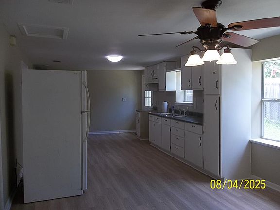 Centrally located property with large fenced back yard. Interesting custom walkway creates a dramatic entrance. Good family home with lots of square footage for the price. Originally built in 1935, a solid cinderblock construction, it was added on to in the 80's. Lots of natural light with the many windows. Huge kitchen has ample storage and limitless possibilities for upgrades. Large primary bedroom and good size bonus rooms. 4th Bedroom / Den could be used for all sorts of things like a second living area, dream office, or a playroom. 3 full bathrooms throughout. Former rental property; would be a great investment opportunity. Home has new HVAC system installed in Oct. 2024. There is fresh paint on the walls and ceiling, new flooring in most of the house, and professional leveling was just completed in February 2025 to ensure foundation structural integrity. New metal roof installed in July! A must-see, priced to sell!