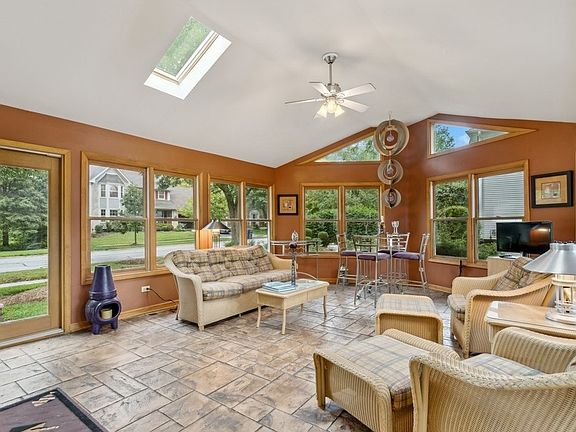 Be prepared to be wowed! This amazing home boasts space for everyone to spread out. Not only will your family love the off-kitchen family room with vaulted ceilings, but an additional, 4 season room that beams with light form it's 360-degree windows and skylights, overlooking a stunningly landscaped yard with pond. The home boasts 4 bedrooms up, plus office off of master, which could be dream of a walk -in closet! First floor bedroom or office is perfect for today's hybrid work from home situation! Lower level is fully finished with bar area and full bathroom. Can easily add another bedroom for an amazing guest floor! This home has been lovingly cared for by one family since custom built. First floor recently painted, and carpet upstairs. All in desired school district, and close to all that Naperville has to offer!