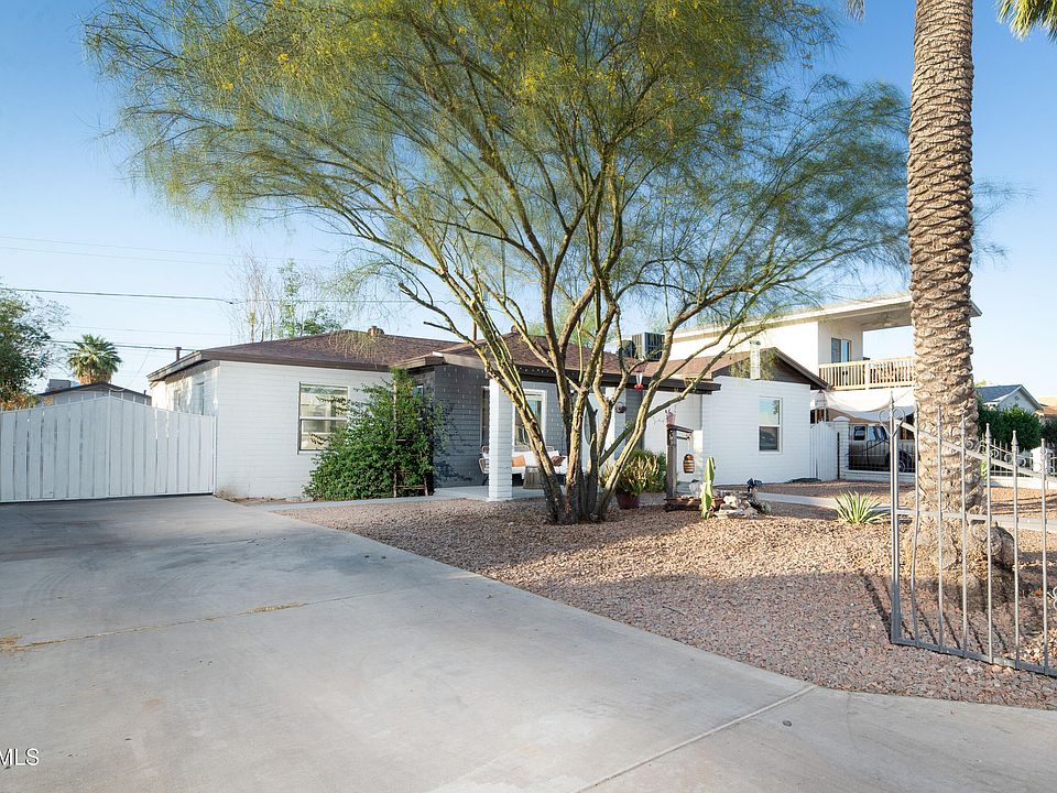 GREAT VALUE for an upgraded and updated walkable and centrally located Coronado 3 bedroom home, just steps from The Hive on 16th ''community of creatives,'' walking distance to the Oak Street Mural Alley, biking distance to the Oak Street bike corridor, a new local microbrewery, brunch hot spots, and a ton of cafes and new shops and services destined to grow even further into a hub of walkability, and urban cultural fun. This charming post-war ranch home is also just blocks from Banner University, 6 minutes to the heart of downtown Phoenix, and Sky Harbor Airport, as well as less than a mile to the on ramps for the interchange of all of the local and interstate highway systems for an easy commute. This well laid out, open-concept, ranch home was heavily upgraded by the prior owner, and then upgraded and updated even further by the current owner. With a custom paint mural inside, custom tiger peacock wallpaper in the bath, generously sized bedrooms (all three!) and closets, separate bonus laundry and storage room that is not included in the square footage, added pantry and mudroom, custom epoxy finish countertops in the kitchen, and large RV parking slab and rear RV gate entry, this house has tons of personality, unique features, and character that make it feel instantly like a very livable and welcoming home. Upgrades include a newer HVAC (2024), newer roof, newer 200 AMP electrical panel, newer pex plumbing supply lines t/o, upgraded blown in insulation in the attic, newer gas water heater, newer kitchen cabinetry, hardware and stainless steel appliances, newer light fixtures and doors t/o, dual paned windows (all in 2022), upgraded baseboards t/o, newer interior and exterior paint (2025), upgraded rear masonry wall, newer portions of ABS sewer line, and newer desert landscaping in the front and rear yards. There's a lot to love in this special space, most notably the way it feels inside. It's rare that 1,200+ square feet is laid out so well! Come see it for yourself!!