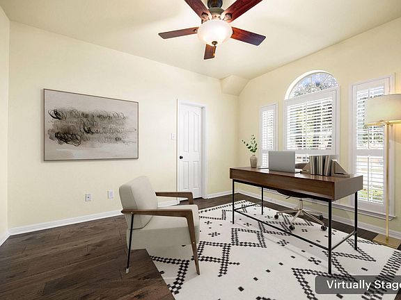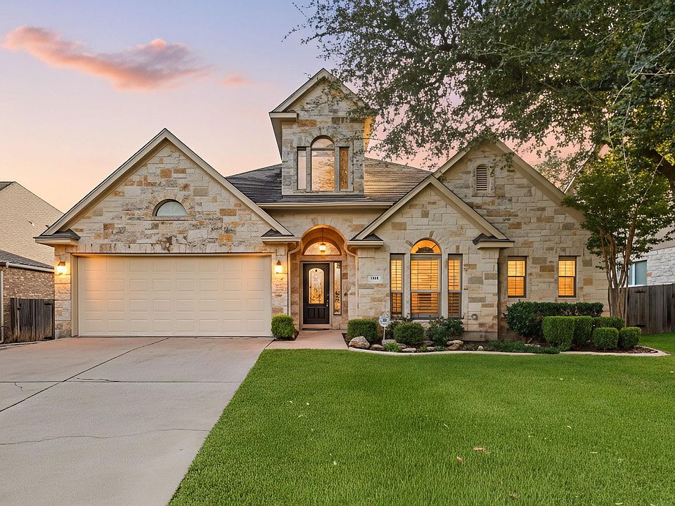 Meticulously maintained and thoughtfully updated, this stunning one-story home backs to a peaceful greenbelt in highly desirable Buttercup Creek. The open-concept floor plan features engineered hardwood floors throughout the main living areas, bedrooms, and closets, with tile in the kitchen, bathrooms, and entryways—no carpet anywhere. A spacious kitchen showcases granite countertops, Whirlpool stainless steel appliances that are approximately five years old, and abundant cabinetry, seamlessly connecting to an extra-large dining room with a convenient passthrough, perfect for entertaining. The split layout provides privacy for the primary suite, while large windows fill the home with natural light. The laundry room offers added functionality with space for an extra refrigerator, and the garage includes connections for a water softener. The backyard offers tranquility and privacy with a wrought iron fence overlooking the greenbelt, a wood fence between neighbors, and a gated access point leading directly to the trail. Recent updates include a reverse osmosis water filter and kitchen faucet (2020), KitchenAid dishwasher (2021), water heater (2021), sealed roof vents (2023), new garage door springs (2025) and new roof (NOV 2025). The entire interior, including doors and trim, was freshly painted in 2020. A TV antenna in the attic provides local channels, with cable connections thoughtfully installed in each bedroom and behind wall-mounted TVs. North-facing and ideally located, with Basis Cedar Park Charter School nearby,this home blends comfort, efficiency, and modern convenience with beautiful greenbelt views and a serene backyard retreat.
