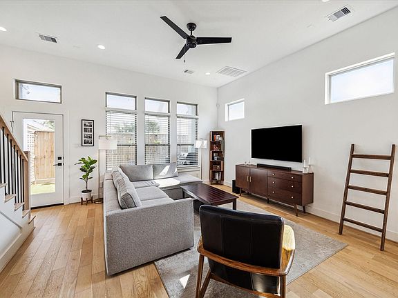This home offers convenient first-floor living with an open layout that seamlessly connects the living area and kitchen. Features include premium finishes throughout, such as wood flooring, stainless steel appliances, and designer accent walls. This home has a large backyard with covered patio and turf for low maintenance! The elegant kitchen is thoughtfully designed with custom touches, while the owner’s retreat impresses with vaulted ceilings, spacious walk-in closets, dual sinks, a luxurious soaking tub, and a frameless glass walk-in shower. Upstairs you will find a flex room great for an office, play area, or gameroom. With easy access to I-10, US-59, and I-45, the location is prime—just minutes from downtown, and popular local spots like the nearby breweries Bad Astronaut and St Arnold.