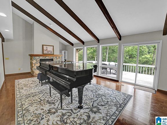 ONE OF A KIND! This unique, custom-designed home sits on Camp Branch Creek with beautiful rock outcroppings & stunning views. A multitude of windows infuse the home with natural light and bring the outdoors in. You will love the massive open deck overlooking your slice of paradise. The first level boasts vaulted ceilings, gas log fireplace, large dining room, eat-in kitchen, breakfast bar, laundry room with utility sink, master suite plus another bedroom & full bath. There is also a 2-car garage & circular drive on the main level. The lower level features two bedrooms, Jack & Jill bathroom, a HUGE family room with gas log fireplace, large office & wet bar. The utility room houses HVAC, water heater, central vacuum & has multiple shelves for additional storage. Award-winning Hoover City Schools. Many updates throughout - list of all improvements provided in MLS documents.