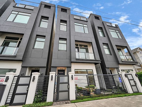 Striking contemporary 4-story home nested in a private gated community in Rice Military! Featuring 3 bedrooms, 3 full bathrooms, & 2 half bathrooms. The second level is where you will find the living room featuring an electric fireplace with heat for an additional cozy touch, electric blinds, a front balcony, & built-in surround sounds. The kitchen includes a Thermador gas stove range, refrigerator, wine fridge, washer, dryer, & a spacious pantry. The third-level primary bedroom features incredible natural light from the windows with electric blinds & a reading nook. Entering into the luxurious primary en-suite equipped with double sinks, a separate glass shower with body spray, an oversized jetted tub, & a huge closet with built-ins! The fourth level is where you'll find the rooftop terrace w/2 spacious balconies, a half bath, & gas-accessible usage. A Tesla charger is conveniently included in the garage to acquaint your charging at home. Make 1512 Malone your new home!