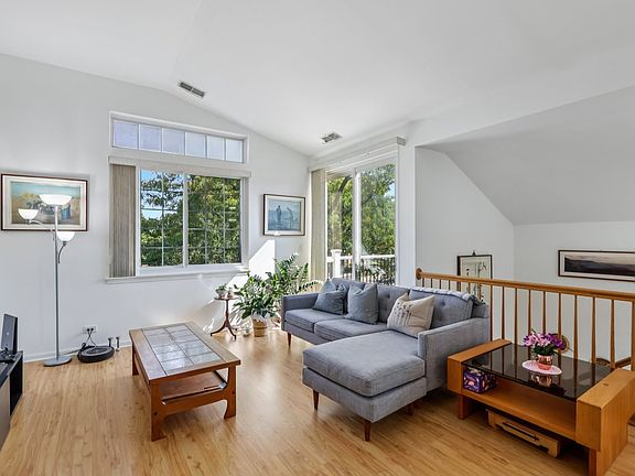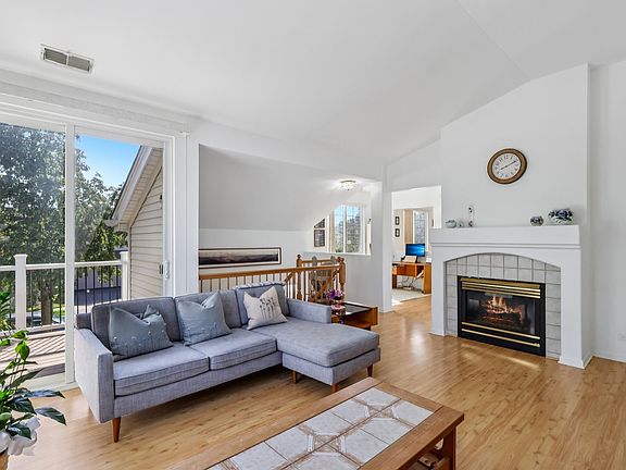 Light & bright 2-Bed/2-Bth 2nd floor townhome in great Palatine location! The first thing you'll notice as you walk up the stairs to the main living level is the abundance of windows and vaulted ceilings letting in plenty of natural light. The cozy living room has a fireplace, sliders leading to your private balcony and gorgeous wood laminate floors that flow throughout much of the home. The eat-in kitchen is spacious and has an island, granite countertops and all SS appliances. You'll also find a formal dining room off of the kitchen, currently being used as an office. The Primary suite also has vaulted ceilings allowing plenty of light to pour in and has an en-suite bath and walk-in closet. An additional bedroom, full bath and the laundry room round out this home. Attached 2-car garage and plenty of space for additional parking! Updates include new furnace & water heater 2019 and newer windows, blinds & kitchen counters. Centrally located close to parks and forest preserves, seconds away from groceries, restaurants, shopping and all that Palatine has to offer. Schedule your tour today!