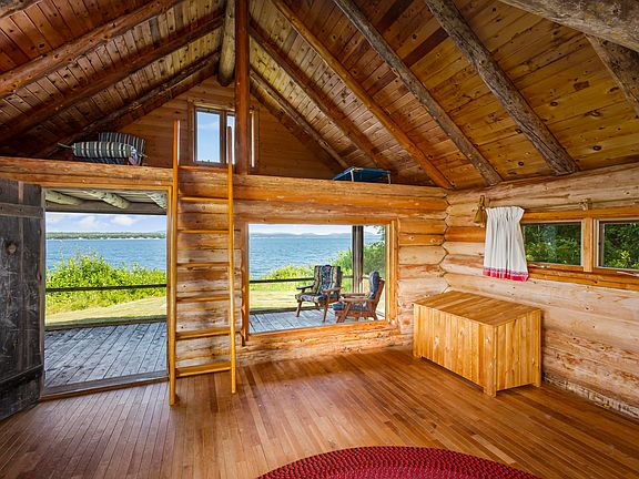 Quintessential Maine log cabin with breath taking views of Union River Bay and the mountains of Acadia National Park which capture the pure beauty of the Maine coast. The property consists mostly of open pasture that gradually meets the bay with 390 feet of ocean frontage. At waters edge you will find beautiful beach with deepwater perfect for all water activities. Imagine sailing the bay or putting in a kayak. The cabin offers a sheltered, rustic retreat where you can escape and fully immerse yourself in the natural, tranquil surroundings and dramatic sunrises to meet the day. Cabin has no power, water or septic.