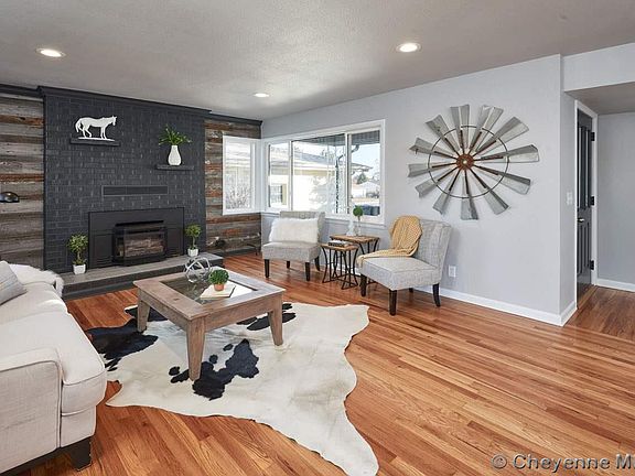 Delightful Eastridge home completely updated throughout with four bedrooms, two baths, two gas fireplaces, and one-car attached garage. This open floor plan has a beautiful kitchen with all new stainless appliances and large window that brings in plenty of natural light. Both baths have been completely updated. Glistening hardwood flooring, all new carpet, paint, and updated electrical panel. Fully fenced back yard with brick patio perfect for entertaining. Don't miss the dry bar located downstairs!