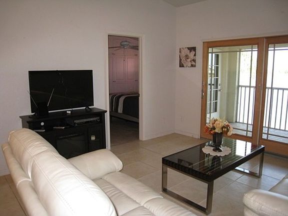 AVAILABLE FOR SEASON 2026. $2700 3 month minimum! Very nice upstairs unit with 2 bedrooms 2 baths, granite counters, tile floors, very close to pool area. Enjoy your coffee on the screened lanai overlooking the Lake! Super nice condominium in Deep Creek. Close to shopping, dining and interstate. Freshly painted interior, nice furniture and a friendly complex. NO PETS. Rent: $2700.00 Tax: 324.00 Security: $1000.00 Admin Fee: $67.20