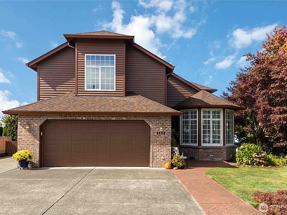 Welcome to this 2,180 sq ft, 3-bed, 2.25-bath home in sought-after Mt Brynion Estates. The open main level features a spacious great room, dining area, and a well-equipped kitchen with double oven, convection microwave, cooktop, and eating bar. Enjoy year-round outdoor living on the covered deck with hot tub. Upstairs, the oversized primary suite includes a walk-in closet, private bath, and access to the upper-level deck. Two more bedrooms and another full bath complete the second floor. The oversized garage features finished floors, a sink, and ample storage. Lower level includes a hobby room and storage space. Roof replaced in 2020. Corner lot with RV parking and second driveway with covered parking. A must-see!