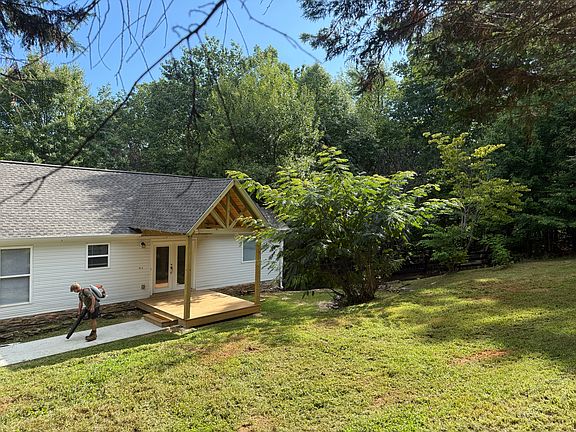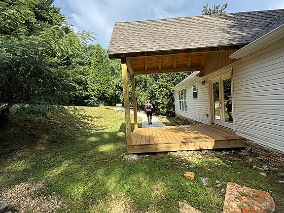 Open floor plan with hardwood floors throughout. 2 bedroom 2 bath modern mountain cottage with large covered rear deck.