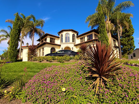 A beautiful Mediterranean Villa located on an elevated 20,015 sq. ft. corner lot w/ panoramic ocean views. This custom designed home, w/ approx. 6,200 SF of living space, has 5 BDs suites, 4 fireplaces and 6 BAs with jerusalem gold marble, granite & chestnut hardwood floors throughout . A formal entry, large formal living r w/ high ceilings, large family room w/ entertainment center & a large master suite w/ adjacent exercise/bonus room. Upstairs loft is ideal for entertaining, an office, study or media rm.The kitchen boasts spacious granite counter space, mahogany cabinets, pantry, fireplace, breakfast area & an indoor gas barbecue grill. The entertainer's dream backyard w/ waterfall, fountains & outdoor barbecue grill surrounded by French doors for convenient access from the downstairs suites. All this w/ a 3-car over-sized garage. Ideal family home for indoor/outdoor entertaining & one of the best curb appeals in the area.