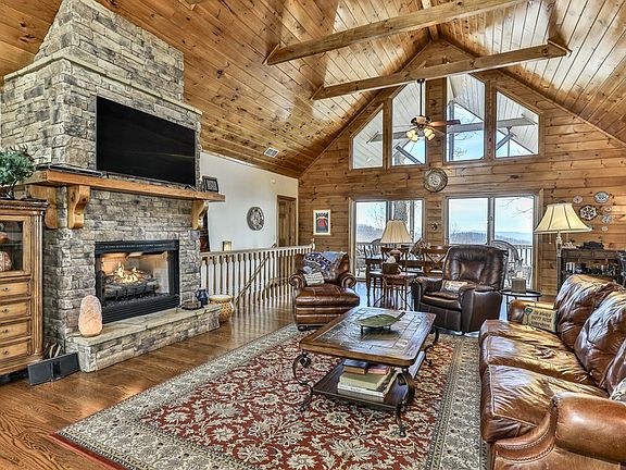 Feel that? It's the sense of calm and peace as you look out over your stunning long range mountain views from your beautifully elegant home located in the desirable Walnut Mountain community. This 3 bed/3 bath plus office space will check all your boxes with its beautiful blend of wood and drywall, gorgeous views throughout the home, oak floors, and well designed floor plan. Enter to find the great room with beamed ceiling, custom stone fireplace, and double sliding doors situated behind the dining area. Well-appointed kitchen with breakfast bar, granite, and tons of storage leads to a spacious mud/laundry room. The bedrooms are well-sized with the master ensuite having double vanities and a tile shower. Fully finished basement level with additional living space, bedroom, bath, and an oversized two car garage. Porches on the front and back provide ample room to enjoy the fresh mountain air. Situated on 2 lots for extra room and with easy level parking. Walnut Mountain is a gated community with lake access, tennis, clubhouse, pool, and more. Let your mountain home dream come true today!