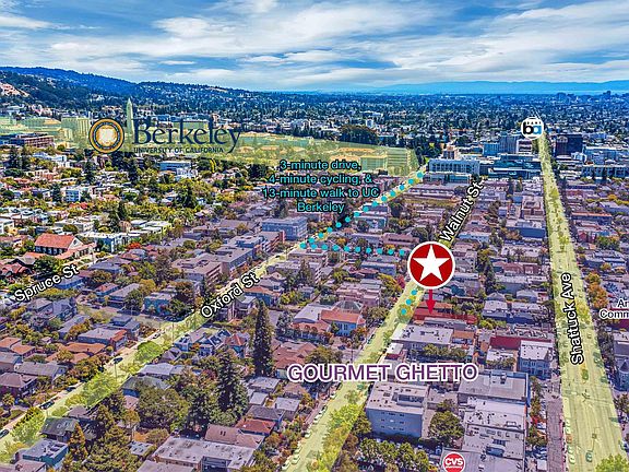 Rare opportunity to own in the heart of Berkeley’s Gourmet Ghetto. Located on a quiet residential street just steps from Chez Panisse, Peet’s Coffee, and Epicurious Garden, 1512 Walnut features two main units: a flexible 1BD/1BA (convertible to 2BD), and a two-level 3BD/1.5BA with Bay-view balcony and hot tub. Both delivered vacant. Bonus features include a basement bonus unit, four separate storage areas, five off-street parking spaces, and on-site and in-unit laundry. Just four blocks from UC Berkeley’s Northside campus. Ideal for owner-occupants or investors seeking multiple income streams from residential units, parking, storage, and more—all in one of Berkeley’s most vibrant and amenity-rich neighborhoods.