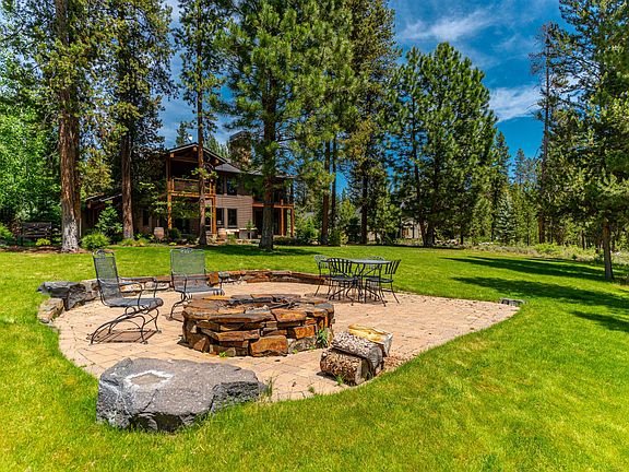 Nestled along the banks of the Fall River and surrounded by towering pines, this inviting, light-filled home welcomes in nature at every turn. Soaring windows in the two story living room, an upper level, river view deck and the gracious expanse of lawn leading to the river's edge, ensure that the beauty of the natural world is always center stage. Open spaces abound from a main living area with floor to ceiling fireplace, to a kitchen and dining area which open directly to a covered paver patio, perfect for meals in the fresh air. A large second level bonus room overlooks the main living space and out to the river beyond. Two primary suites, 3rd bedroom and flex space complete the 3276 SF main house. Built in 2020, the detached 754 SF guest house adds even more flexibility. Located just minutes from Sunriver and renowned for exceptional fly fishing opportunities, this property is destined to be the backdrop of your most cherished Central Oregon memories.