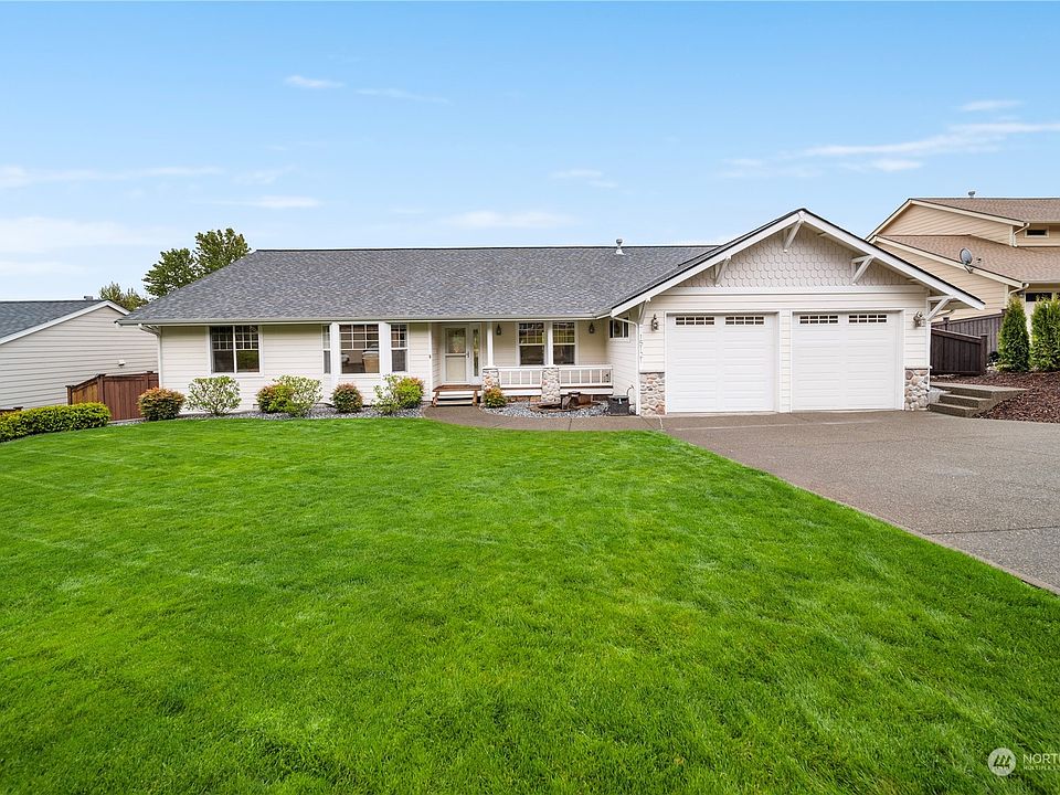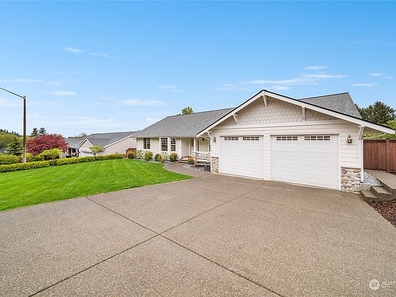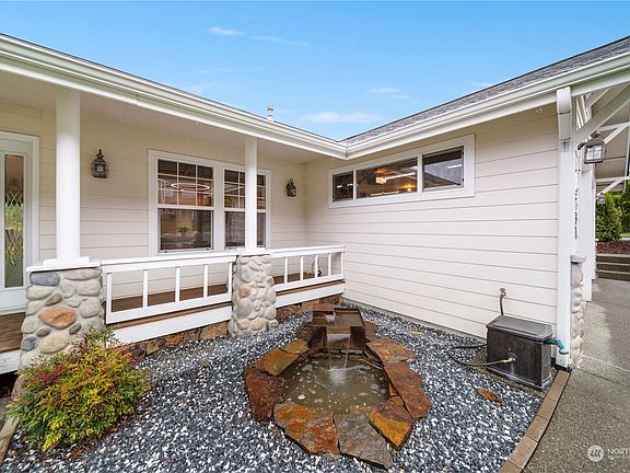 Welcome to your meticulously upgraded home in a secure gated community, now featuring a new roof for lasting elegance and protection. This splendid property showcases a primary suite with direct access to a double deck, offering serene Orting Valley views ideal for both tranquil mornings and entertaining evenings. Nestled on a spacious 1/3 acre lot, the outdoor spaces include well-appointed decks and a patio, complete with a BBQ gas hookup for upscale outdoor dining. Inside, the home offers an open kitchen and great room layout, a den accented by French doors for privacy, and two additional bedrooms linked by a full Jack & Jill bathroom. Equipped with air conditioning, this home combines comfort with refined living in a picturesque setting.