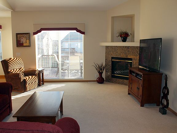 Maintenance free living is a dream in this 3bed/3bath/2 car garage villa! Updated kitchen w/ stainless steel appliances, granite counter tops, under mount sink & wood floors. Added recessed lighting in great room along with vaulted ceilings & large windows make the rooom bright. LL has bed, 3/4 bath & rec room. Cabinetry been added in the laundry room & storage room to help make you super organized! Custom rollling island in storage room - great for crafting/wrapping station or just to tinker!
