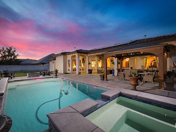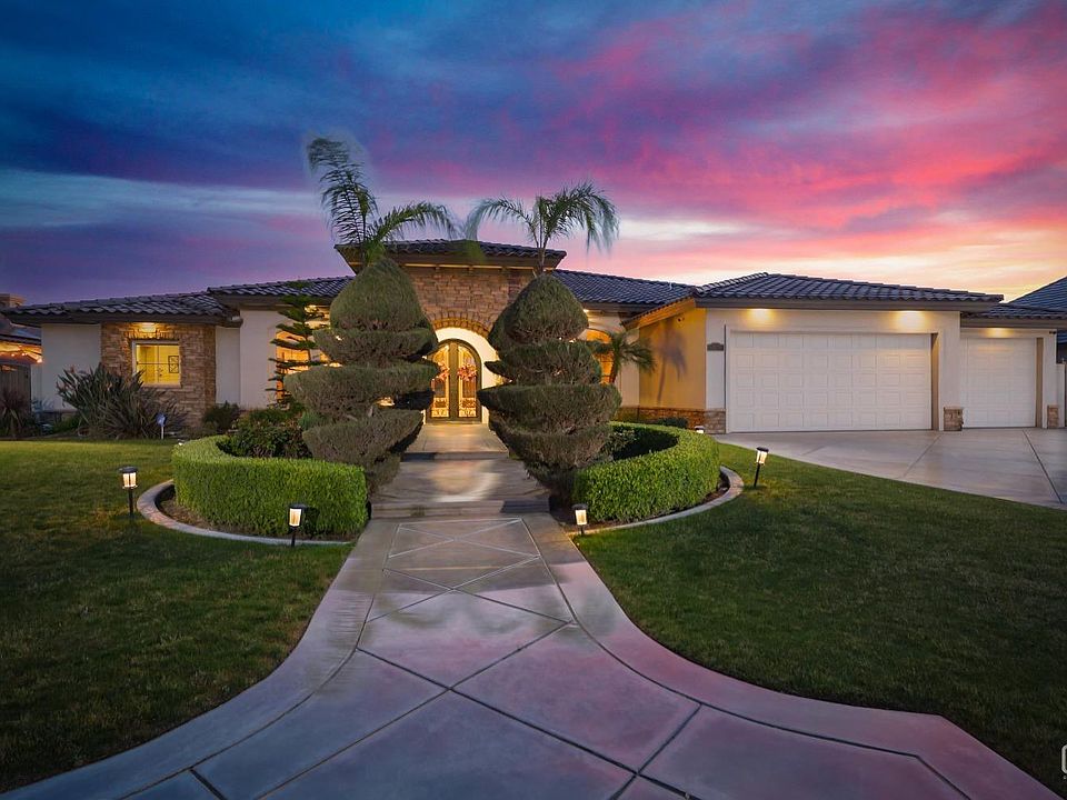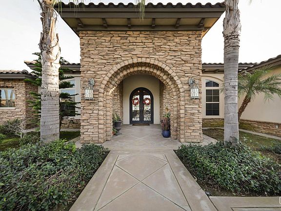 This stunning five-bedroom, three-bathroom home in the elite community of Talladega sits on .6 acres and boasts a prime cul-de-sac location and includes RV parking. The custom steel double front doors lead into a spacious interior with high tray ceilings and large windows that let in the natural light and views of the newly finished pool & spa in the monster-sized backyard. The open split-wing floorplan reveals a chef's kitchen with Viking appliances, center island, built-in fridge, and barstools. The large master suite includes a jetted tub, spacious closet, and double vanities, while the family room offers plenty of built-ins, cozy fireplace, and custom cabinetry. The large covered patio overlooks the impressive yard with a pool/spa containing sheer descent waterfalls, fire pit, and a bonus poolside pergola for extra shade during the hot Bakersfield summers.