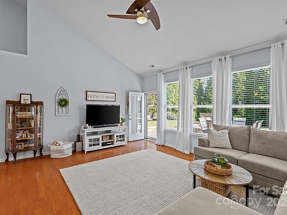 Welcome to this charming home showcasing custom details throughout. The great room features a cathedral ceiling and a rear wall of windows that fills the space with natural light. An open floorplan with beautiful hardwood flooring provides a seamless flow, ideal for entertaining and relaxed everyday living. Kitchen features quartz counters, tile backsplash, breakfast bar and pantry. Custom millwork adds elegance and definition to the dining room. The primary suite boasts a vaulted ceiling, dual vanities, a tile-surround soaking tub, separate shower and a custom designed walk in closet. Two additional bedrooms and a full bath complete the main level. Upstairs, a spacious bonus / 4th bedroom includes a walk in closet perfect for home office, guest or recreation room. Outdoor living features a custom designed stone patio with firepit and private, fenced backyard. This home is conveniently located near the airport as well as shops and restaurants in Rivergate and Fort Mill.