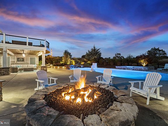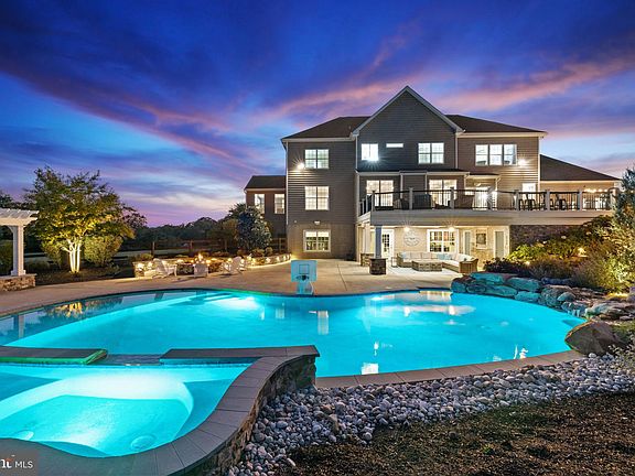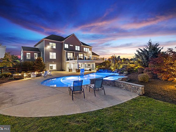Exquisite 15-Acre country estate with pool, breathtaking sunrise AND sunset mountain views and resort-style living! Perched on a scenic hilltop that backs to conservation farmland, this gorgeous property offers panoramic mountain vistas, breathtaking sunrises and sunsets, and wide-open rolling pastures. Here you’ll find an elegant stone-front estate complemented by a stunning resort-style saltwater pool w/ hot tub and outdoor entertaining spaces, all within a horse-friendly neighborhood of other large-acreage homes. Located on a quiet cul-de-sac, this property provides the perfect setting for horses, farming, or simply embracing the beauty of nature. The outdoor living is truly unmatched—relax by the sparkling saltwater pool with adjoining hot tub, gather around the gas fire pit on cool evenings, or enjoy the dramatic waterfalls and unique jumping boulder that make every day feel like a getaway. Soak up the sun on the large tanning ledge, complete with the option for a built-in umbrella. Backyard oasis would cost $500k to replicate today. A second wood-burning fire pit located in a wooded enclave offers a cozy camping atmosphere -- great for family adventures! Inside, the home welcomes you with soaring ceilings, breathtaking views from every window, and exquisite custom details throughout. Offering five spacious bedrooms and four and a half baths, this residence was thoughtfully designed with impeccable attention to detail. Ideal for both everyday living and grand entertaining, the open-concept gourmet kitchen features custom cabinetry, stainless steel appliances, and an expansive island with seating for four. In the family room, elegant trim work and a coffered ceiling with wood plank accents add warmth and character, creating a space that feels both refined and inviting. A main-level office provides the perfect setting for working from home or managing household affairs with ease. Upstairs, the spacious primary bedroom boasts gorgeous sunrise views, a large sitting area, and two massive walk-in closets. The walk-out lower level opens to the pool deck and is made for family entertainment with a fabulous theater room, game room and guest bedroom and full bath. Conveniently located, the property is 6 miles to Purcellville, 11 miles to Downtown Leesburg and 35 minutes to Dulles International Airport. This stately residence offers stunning views, extraordinary outdoor living and timeless architecture, all in a serene country setting. Don't miss this incredible opportunity!
