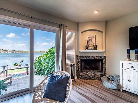 Waterfront Island Retreat with Coastal Charm! Welcome to 15125 Leeward Drive Unit 8, a beautifully maintained 2-bedroom, 2.5-bath condo located in the Lakeshore Villas community on Padre Island. This end unit offers a coastal color palette and luxurious furnishings throughout the open floorplan with luxury vinyl plank flooring, wood-burning fireplace, plus windstorm-certified windows and sliding doors, for peace of mind. Enjoy stunning waterfront views of Lake Padre from your private patio or from the balcony of the primary suite—ideal for morning coffee or evening sunsets with serene lake-like vistas. Some features of the furnished, turn-key property include spacious living and dining areas, fully equipped kitchen with modern stainless appliances, in-unit stacked washer and dryer, plenty of natural light and a community pool, dock and pier. You’ll be surprised at the ease of accessing many of the local amenities, from the short walk or golf cart ride to the seashore, to one of the island’s many hot spots for shopping, dining or the live music, South Texas is known for. Whether you're looking to live the island lifestyle year-round or invest in a fully furnished rental (minus a few personal and staging items), this unit has shown a consistent occupancy record, delivering both charm and benefit. Reach out to your favorite Realtor today to schedule a viewing. Note: This unit is currently permitted as a short-term rental (minimum 7 days) and is non-transferable. For permitting availability for this unit, go to The City of Corpus Christi’s website under Development Services/Short Term Rental Permits to check availability.