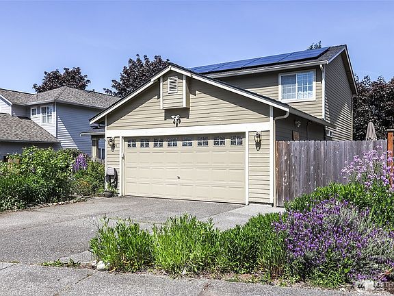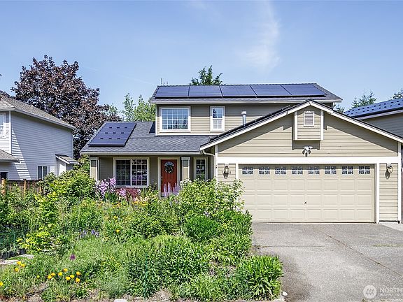 Welcome to this beautiful home in the highly desired Silver Firs neighborhood! Located on a cul-de-sac within top-rated school boundaries, this property offers smart, sustainable living. The drought-resistant front yard adds curb appeal, while the fully fenced backyard is a gardener’s dream with raised beds, fruit trees, a deck, and playscape—perfect for entertaining or relaxing. Inside, enjoy a light-filled open floor plan with soaring ceilings, A/C, cozy fireplace, and even an endless pool in the garage! (Could be moved to backyard). The main floor primary suite includes an en-suite bath and walk-in closet. Solar panels provide energy efficiency. Silver Firs offers parks, trails, playfields, and easy access to the YMCA.