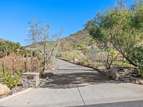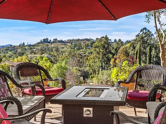 Your very own vineyard setting amidst the rolling hills of Poway...600-700 vines! An entertainers delight both in & outdoors featuring a large eat-in island kitchen adjacent to the family room big enough for everybody! 3 sets of french doors from the primary BR, living room & kitchen opening out to the backyard living space...what a delight it is! A sparkling pool, fireplace, bocce ball court, BBQ, views & citrus trees! Enjoy a true primary BR retreat with a walk-in closet big enough to be another room. Solar for booth the house & pool!