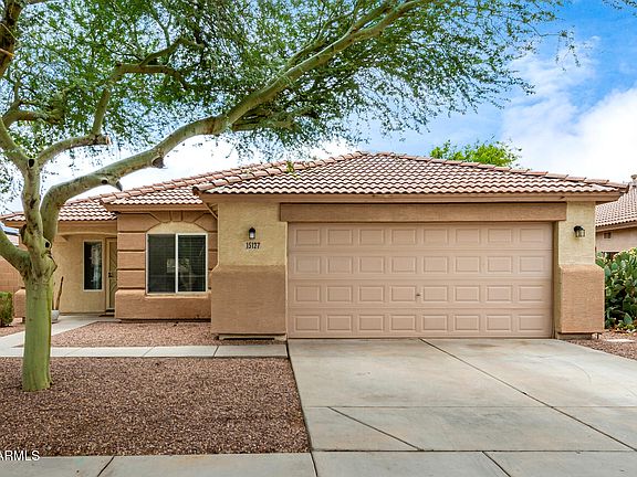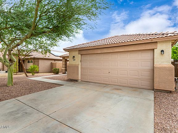 Seize the chance to own the #1 Airbnb residence in Goodyear! You're welcomed by an inviting living room with vaulted ceilings, a soothing palette, recessed lighting, and attractive wood-look flooring. Adjacent, you'll find an open den ideal for an office or a lounge. The eat-in kitchen comes with quartz counters, crisp white cabinetry with crown moulding, recessed lighting, a tile backsplash, stainless steel appliances, a pantry, and an island with a breakfast bar. The main bedroom offers soft carpeting, a cozy sitting nook, an ensuite with double sinks, and a walk-in closet. Imagine tranquil evenings in the charming backyard, featuring a covered patio, pristine artificial turf, and a refreshing pool for cooling down on hot summer days.