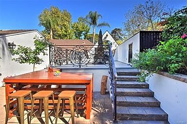 This South of the boulevard Sherman Oaks contemporary home has outstanding curb appeal plus a large grassy front yard and mature landscaping. Enter this amazing home thru the custom wood and glass double doors that lead you to an entry with high ceilings and wood floors that run flawlessly throughout. The living room features wood floors, high exposed wood ceilings, several skylights that help make it a bright and pleasing area plus French doors to the backyard. The dining area also has high exposed wood ceilings and French doors and is open to the art-deco style kitchen with checkerboard floors, granite counters, black stainless steel appliances, skylights, and a breakfast bar that links the kitchen and dining areas. The main floor features 3 nice-sized bedrooms including the tranquil and spacious master suite with exposed wood ceilings, a full bathroom, a walk-in closet, and a private patio. The terraced backyard has several lounging areas and plenty of mature tropical landscaping. The tenant pays for all the utilities except for the gardener.