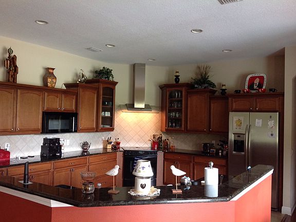 WELCOME TO YOUR EXECUTIVE HOME at 15129 Kittrell Dr, Spring Hill in Pasco County. This MAGNIFICENT, CUSTOM-BUILT MODEL features 3 beds+office, 2 bath & 3 car garage on 1.52 acre with WATERFRONT views on a cul-de-sac. Key exterior features are SALT-WATER, PEBBLE-TECH POOL with spill-over SPA & fire pit all on a pavered lanai enclosed by iron fence. The AMAZING property also has stacked stone accents, carriage lights, arched windows & door design, expansive driveway & tropical landscaping. As you stroll through the BEAUTIFUL double doors with decorative glass, you'll LOVE the OPEN FLOOR plan consisting of the foyer, dining & living rooms, kitchen & breakfast nook with either tile or hardwood floors. The dining room with ELEGANT chandelier & tray ceiling flows into the living room with a stacked stone & mantle, wood burning FIREPLACE, double tray ceiling, fan & built-in 75-gal AQUARIUM (fish included). The GOURMET kitchen consists of granite counters, wood cabinets with upper rope trim & hardware, pantry, recessed lights, island/bar & all appliances. Grab a casual meal at the built-in dinette with matching granite pedestal table & seats, pendant lights & triple seamless bay window overlooking the pond. The king master bed has tray ceiling, media wall, bay window w/seating, his/hers walk-in closets. Private bath is an OASIS with jetted garden tub, shower, dual sinks & media wired. Unique features to the 2nd bed is built-in desk & the 3rd bed has bay window seat. 2nd bath is nearby. THIS IS YOUR FUTURE HOME!