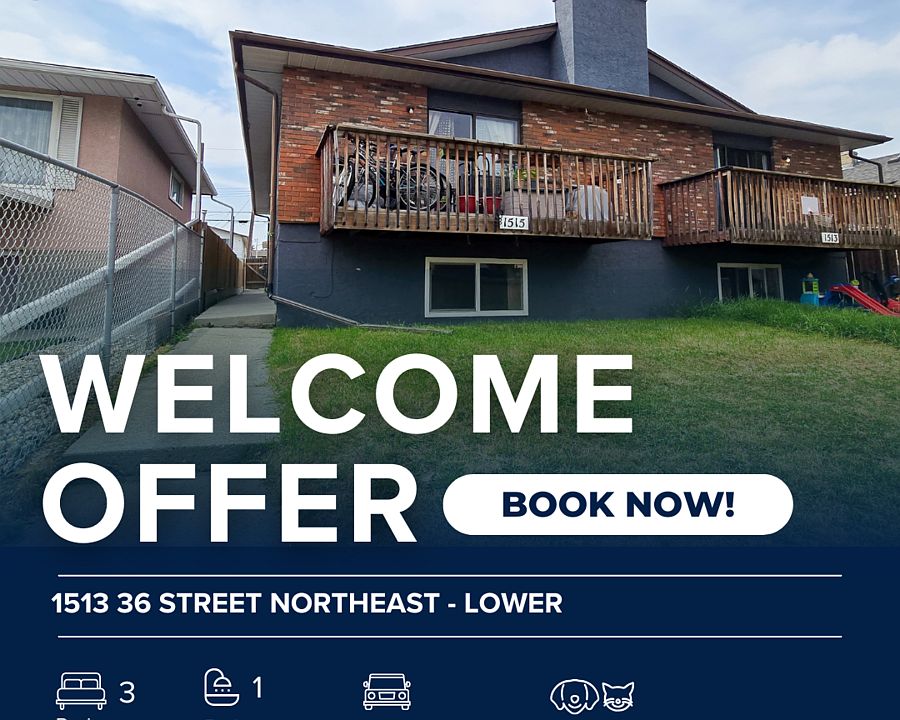 Welcome to your new home at 1513 36 Street Northeast - Lower a modern and well-maintained 3 beds / 1 baths / Basement/Lower offering comfort, space, and convenience. Ideally located close to shopping, schools, parks, and transit.