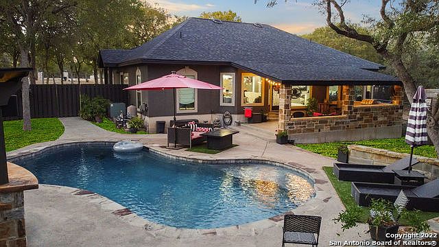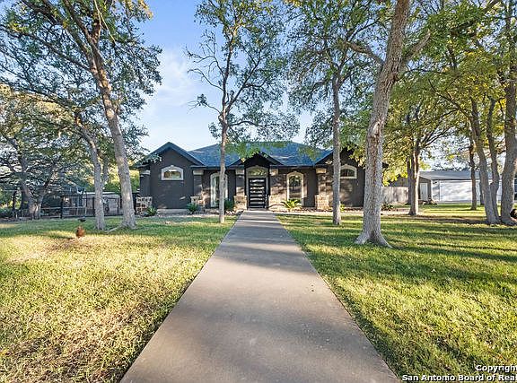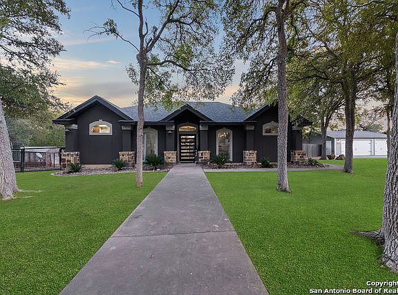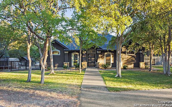 Nestled amongst the many oaks on this sprawling 5.11 acre property is an exquisite, 1-story, all stucco, updated home. 3 bedrooms, 2 baths, a formal dining plus a separate study make for the perfect Hill Country Livin' Dream! Over the years, the Owners have taken great pride in their home and added some beautiful updates including solid surface kitchen counters, chandaliers, a wine frig, custom closet shelving, custom iron front door & YES! A gorgeous, inground pool! When you walk out the back door it's like walking into your own private oasis. Spark up the grill in the built-in, outdoor kitchen; take a refreshing dip in the pool; or soak away the day in the hot tub. All right in your very own backyard! Something worth mentioning is the construction of this home... It is constructed of Cold-Formed Steel Members, making it much sturdier and weather resistant than the typical frame. If you've been waiting for just the right home to make the move to the Hill Country... this is THE one. Away from the City but close enough to shopping, dining & top-notch schools, you don't want to miss it!