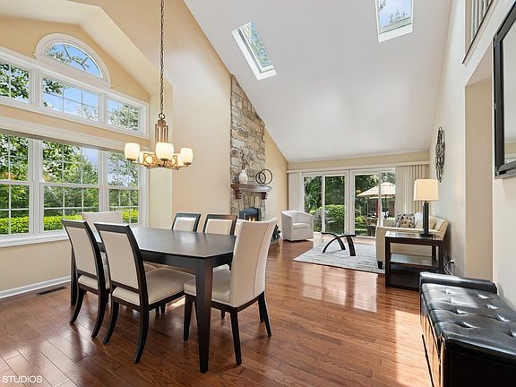 Welcome to this impeccably updated 3-bed, 4-bath end-unit townhome with main-level primary suite and finished basement, nestled in a serene setting with panoramic views of lush green space and mature trees. Soaring ceilings, abundant natural light, and high-end finishes define every inch of this home. The main living area features vaulted ceilings with skylights, a dramatic two-story stone fireplace, hardwood floors, and triple-stack windows topped with a circle-top window in the dining room. Glass doors lead to a private patio for blissful outdoor living surrounded by nature.The stunning kitchen boasts espresso Shaker-style cabinets with custom pullouts, granite counters, glass subway tile backsplash, 36" Thermador dual-fuel gas range, Samsung French door fridge, Grohe urban chic faucet, task and recessed lighting. A sunny bayed breakfast nook completes the space. Retreat to your main-level owner's suite with vaulted ceiling, hardwood floors, walk-in closet with custom organizers, and a spacious sitting room with skylight. The luxury en-suite bath includes cherry cabinetry, linen tower, oversized shower with glass mosaic, bench, toiletry niches, and polished nickel fixtures. First floor laundry/mud room boasts cabinets, utility sink and textured wall tile with direct access to garage. Upstairs, discover a versatile loft/media room, a generous second bedroom with gorgeous quartz bath with spa-inspired finishes,vaulted ceiling, and walk-in closet. The finished basement is an entertainer's dream with large rec room, full wet bar, 3rd bedroom/home office, and full bath with steam shower-plus plenty of storage and workshop space! Other highlights: Roof & skylights (2023) Marvin windows (2015) Furnace & A/C (2016, with 10-year warranty) Engineered hardwood floors on both levels (2015) Leaded glass sidelight at entry, covered porch. 2-car attached garage Pretty landscaping and ample guest parking. Enjoy resort-style amenities including 2 pools, clubhouse, scenic walking paths, and ponds. Conveniently close to shopping, dining, and major roads-and all within the highly rated Buffalo Grove High School district. No rentals allowed-owner-occupied community! Don't miss this rare opportunity to live in one of the most sought-after locations in Arlington Club!