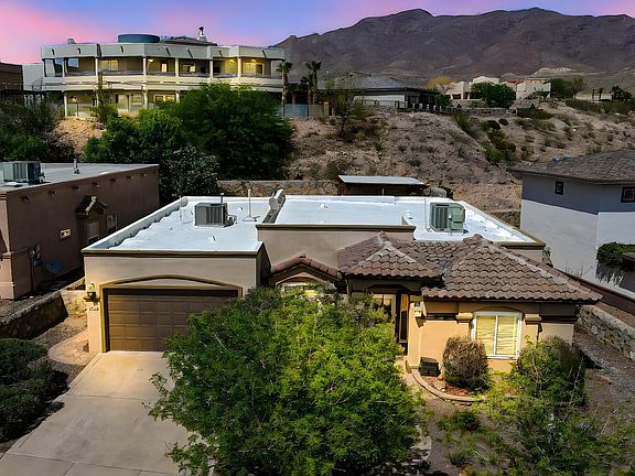 Beautiful 4-bed, 3-bath home in West El Paso! This 2,455 sq. ft. gem boasts a spacious great room with a fireplace, a gourmet kitchen with granite counters, stainless steel appliances, and ample storage. The private primary suite features its own fireplace, walk-in closet, and spa-like bath. Two guest rooms share a Jack & Jill bath, plus an additional room for an office or guest space. The stunning backyard offers a pool, spa, gazebo, and terraced patio with breathtaking views. Recent upgrades include a new roof, windows, and LED lighting. Prime location near parks, trails, and top schools!