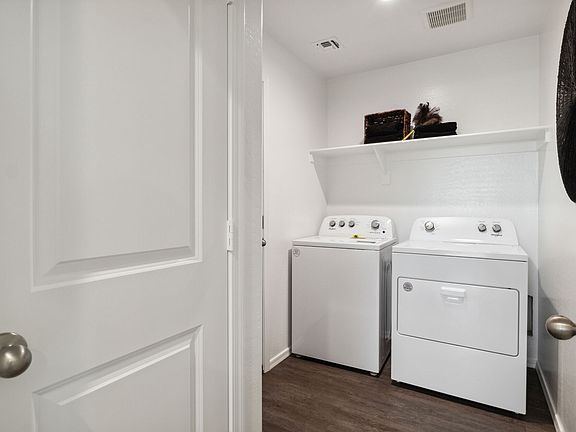 The Dalton is a charming one-story home featuring 4 bedrooms, 2 baths, and 2-car garage at Solana Place at Carlton Commons. The front covered patio opens to the foyer with the beautifully crafted kitchen on the first right. The kitchen includes granite counter tops, Stainless Steel appliances and faces the living area and dining area in this beautiful open concept floorplan. The first bedroom features an attractive ensuite with grand walk-in shower, water closet, double sink and large walk-in closet. The rear covered patio comes built standard and is located off the dining room. Additional features include sheet vinyl flooring in entry, living room, and all wet areas, granite counter tops in all bathrooms, and yard landscaping options. This perfect starter home includes our HOME IS CONNECTED base package which includes the Amazon Dot, Front Door Bell, Front Door Deadbolt Lock, Home Hub, Light Switch, and Thermostat.