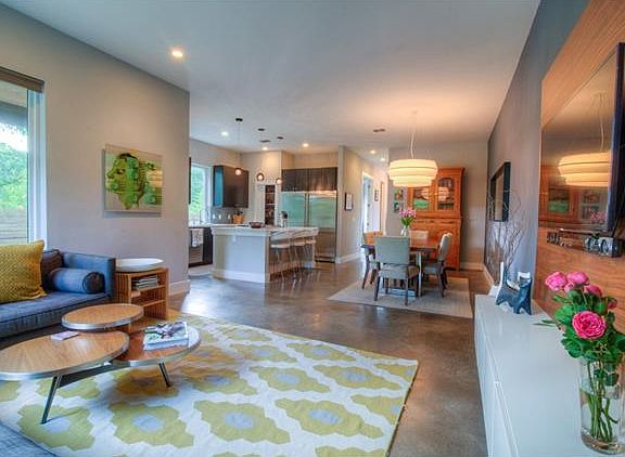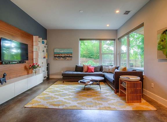 Fantastic Tarrytown 2 story free standing (condo) built by PSW, green 5 star luxury property furnished or unfurnished.Contemporary style featuring easy care concrete floors on 1st level, office, living, dining, kitchen with breakfast bar, dining & full bath on main level. 2 car front entry garage. Upstairs 3 bedrooms, 3 full baths, Master & 2nd bedrooms plus 2nd living area. Laundry in upstairs closet, washer & dryer included. Backs to Park w/Pool, tennis, courts, playscape, close to DT, UT, shopping & dining. HOA has 2 pet max.