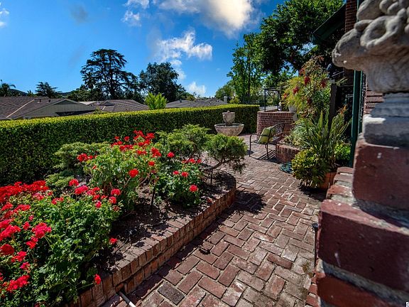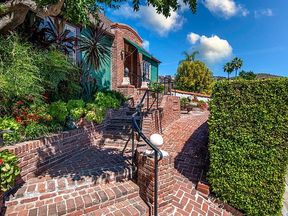 Fantastic opportunity to live in a prime hillside area of Glendale and bring your creative vision to make this property your home, your way! Built in 1935, this 2 bedroom, 2 bathroom home is a charming Tudor style located in a peaceful setting with mountain views. Old world charm includes rustic brick outdoor patios, hardwood floors, French doors and outdoor fountains. Endless possible uses for the additional 393 sq ft finished room, not included in square footage of main home, attached to the house and just off the rear patio. This amazing space has a high pitched ceiling with recessed lighting, 3/4 bathroom, kitchenette and a wall of French doors bringing in lovely natural light. The main home's formal, step down living room features a fireplace, dramatic designer wall paper, bay window and French doors to the rear brick patio. Across the hall way is a large, formal dining room. The updated kitchen with granite counters & SS appliances leads to a side view patio for al fresco dining and BBQ. The large breakfast room accommodates a kitchen table and a bar height ledge for additional seating where guests can chat with the chef. Each bedroom has an en-suite bathroom with one bathroom also serving as a guest bath with a second door to the hallway. One cozy bedroom has its own patio with access from French doors and houses a stackable laundry unit. The patios wrap around the home with tall mature landscaping making the lot size completely usable and appear larger. The brick rea