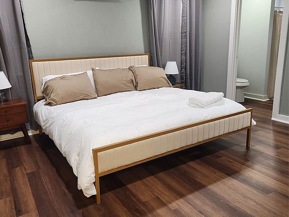 Charming, fully furnished open floor plan in renovated 2b/2ba in Taylor is perfect for a quiet night in watching TV while making dinner or entertaining friends and family after work. Or relax in one of two bedrooms with room darkening curtains and white noise machine to easily fall asleep. Flex room can be used for an exercise space or an office space, perfect for a workout or a work day. Full sized washer and dryer on site. Pet friendly property with huge backyard and vinyl plank flooring throughout the house make clean up a breeze. All utilities and internet are included. Close to Samsung, close to rail yard, close to downtown Taylor.