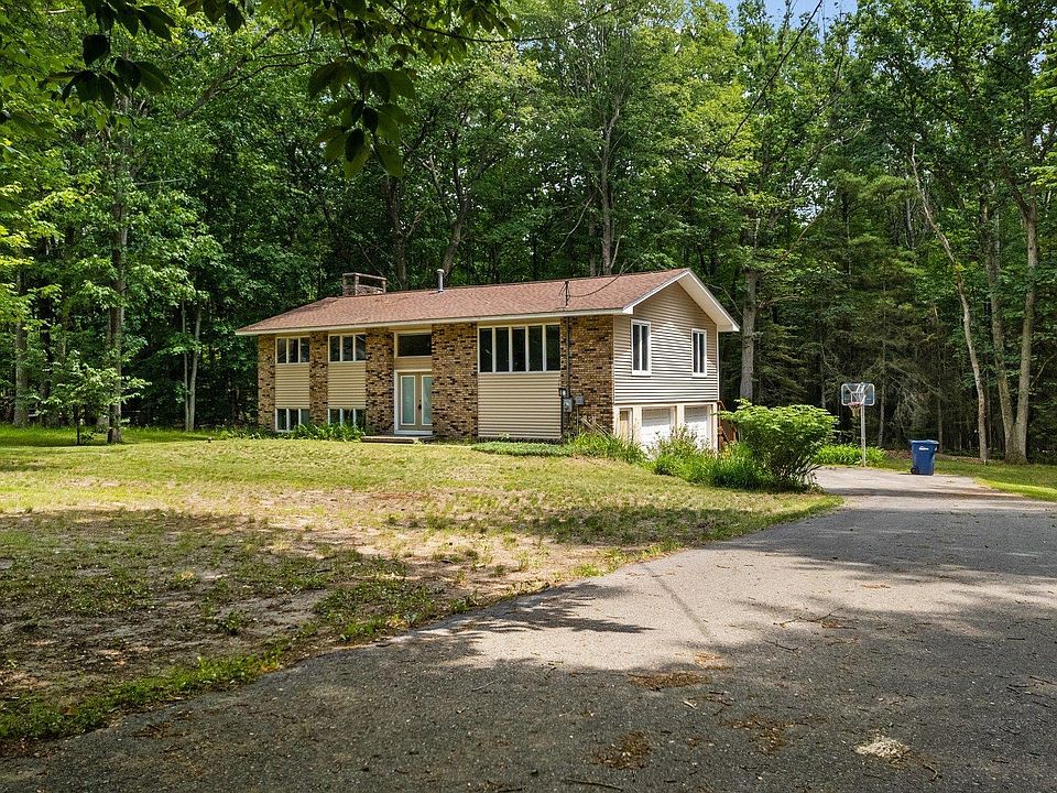 Recently refreshed Bi- Level home in a quiet, wooded Interlochen neighborhood. The home offers 3-4 bedrooms on the upper level. The open concept - high ceiling floorplan combines the Kitchen/Dining/Living spaces, providing tons of natural light. The rear deck off the kitchen takes you down to the spacious back yard. Or you can get there via the Lower level - where you'll find a finished living space with fireplace and walk-out. Cedar Hedge Lake shared access pathway is about two lots down from this home. Beach and dock, and excellent fishing. Home is vacant and easy to show! Be the Owner!
