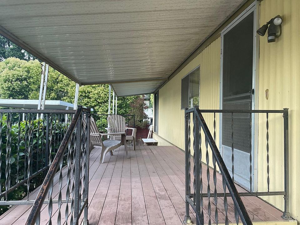 Opportunity knocks with this lovingly maintained, 2 bed 2 bath mobile on foundation. The yard is fully fenced with a gated entrance for secure parking. A large trex-deck under the awning takes you to the front door. Walk in to a large living room with a full panel of West facing windows; enjoy one of two dining room spaces, one on either side of the kitchen, the kitchen that boasts updated appliances including a built in oven, electric stove top and fridge. In one dining area there is a traditional built in china hutch, the other has an added electric fireplace and hearth for ambiance and a slider to the rear porch. The bedroom and bath are spacious with large closets and lots of storage. The primary bedroom has a slider to the patio, built in vanity and cabinets as well as large closet. The bathroom has a walk in shower for convenience and second built in vanity. In the large yard enjoy a covered carport, easy landscaping, mature rose bushes along the perimeter, a storage shed and the added bonus of hard wired generator, be prepared for anything. Although the flooring and paneling are original, everything was well kept and in very good condition.