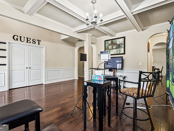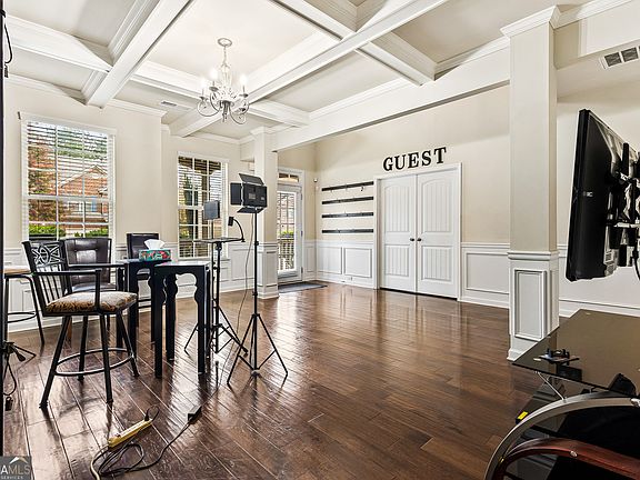 Welcome to the largest and most sought-after floor plan in Silverbrook Reserve! This stunning 4,202 sq. ft. Craftsman style Traditional home is ready for you to add your personal touch. The main level boasts an open floor plan with hardwood floors throughout, setting a sophisticated stage for everyday living and entertaining. Key features include an upgraded kitchen with granite countertops, tile backsplash, and an island with bar seating, plus a butler's pantry complete with a wine rack. The formal dining room features elegant coffered ceilings. Upstairs Living & Luxury: The oversized master suite is a true retreat, featuring a tray ceiling and an extra-large sitting room. The spa-like master bath offers a soaking tub, separate shower, and dual vanities with separate his-and-hers walk-in closets. For ultimate convenience, the laundry room is located upstairs. Two large secondary bedrooms both feature direct access to the street-facing walk out balcony, while another large bedroom includes its own private full bath. Outdoor & Community Perks: Enjoy a private, level, and fully fenced backyard-perfect for pets! The property also features a large, covered back patio with railing. As a resident of Silverbrook Reserve, you'll have access to fantastic community amenities, including a swim, tennis, playground, and clubhouse.