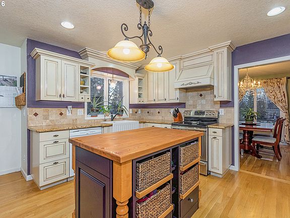 This is the one! Great, central location in nice, well-established neigh'd. Immaculate w/ open flr plan. Custom finishes including remodeled kitchen gorgeous Euro style,slab granite. French doors make entertaining a breeze leading to lg deck w/ Mt Hood views. Mstr bath w/ tile walk-in shower, clawfoot tub & wainscoting.Bamboo flooring. Cute tea/playhouse(w/ elec) offers many uses. Lg 3-car gar plus RV pkg.