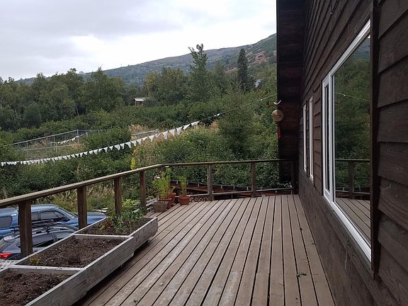 If you want to live in Alaska but work at home or in Anchorage this house is for you! As far up the hillside as you can get, this property abuts Chugach State Park. Access to Rabbit Lakes, Flattop and Peak 3 by walking or skiing out the backdoor. 1900 sq foot 2 bedroom 2 bath 5* energy rated post and beam furnished home. Wood stove, natural gas in floor heat and domestic hot water. 8 or 12 month lease utilities not included. Also have chicken coop and enclosure. Property includes large fenced in moose-proof garden space. Tenant responsible for utilities.