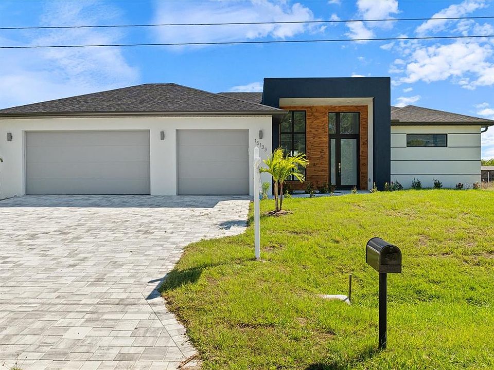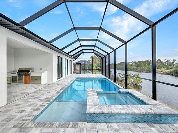 HUGE PRICE IMPROVEMENT***MOTIVATED SELLER***BRING ALL OFFERS***MUST SELL***MOVE IN READY*** This BRAND-NEW, CUSTOM-BUILT HOME radiates QUALITY CRAFTSMANSHIP and MODERN ELEGANCE from the moment you arrive. The PAVER DRIVEWAY, GRAND ENTRANCE, and FLOOR-TO-CEILING WINDOWS WITH SLATTED WOOD ACCENTS immediately set the tone for the stunning design found throughout. Perfectly situated on a SALTWATER CANAL WITH DIRECT GULF ACCESS in the highly desirable boating community of South Gulf Cove, this 3-BEDROOM + OFFICE, 3.5-BATHROOM, RESIDENCE — featuring TWO MASTER SUITES — offers REFINED LUXURY and THOUGHTFUL FUNCTIONALITY at every turn. Step inside to discover SOARING VOLUME CEILINGS, 8-FOOT DOORS, and DESIGNER 24” x 48” porcelain tile flooring throughout. The SPACIOUS LIVING ROOM showcases a dramatic TRAY CEILING WITH RECESSED LIGHTING and a THREE-PANEL SLIDING GLASS DOOR that opens to the COVERED LANAI, creating a bright and seamless indoor-outdoor living experience. The primary suite is a private retreat, featuring lanai access, a Tray ceiling, TWO walk-in closets, and a SPA-INSPIRED BATHROOM with DUAL VANITIES, QUARTZ COUNTERTOPS, and a TILED SHOWER WITH DUAL SHOWERHEADS. The JUNIOR PRIMARY SUITE (perfect for guests or in-laws) includes its own ENSUITE BATH boasting a fully TILED SHOWER. At the heart of the home, the CHEF-INSPIRED KITCHEN dazzles with HIGH-END STAINLESS STEEL APPLIANCES, TILE BACKSPLASH, WALK-IN PANTRY, and a WATERFALL-EDGE QUARTZ ISLAND accented by elegant PENDANT LIGHTING and SLATTED WOOD DETAILING. Sleek BLACK HARDWARE adds a modern finishing touch. Enjoy YEAR-ROUND PEACE OF MIND with HURRICANE-IMPACT WINDOWS AND SLIDING GLASS DOORS throughout. The outdoor living area is equally impressive, featuring a spacious covered lanai, SUMMER KITCHEN hookups, OUTDOOR SHOWER, and a POOL AND SPA with a SUNDECK perfect for lounging, splashing, or cooling off with your furry friends. The 60’ WIDE PAVER POOL DECK and HEAVY-DUTY UPGRADED CAGE (6” FRAMING) complete this exceptional OUTDOOR OASIS. Each of the three bedrooms offers DIRECT POOL ACCESS, making this home ideal for both ENTERTAINING and RELAXED FLORIDA LIVING. The OVERSIZED 3-CAR GARAGE (32’ x 20’, 720 SQ. FT.) includes HURRICANE-RATED DOORS and houses the HVAC handler and water heater. Located just minutes from GOLF COURSES, BEACHES, MARINAS, WORLD-CLASS FISHING, and ENDLESS WATER ADVENTURES, this 2,014 SQ. FT. (UNDER AIR) home feels even larger thanks to its OPEN DESIGN AND SOARING CEILINGS. Bring your BOATS, RVs, AND TRAILERS — the South Gulf Cove Community offers TWO BOAT RAMPS, FIVE PARKS, and is GOLF CART-FRIENDLY, making it the ultimate destination for OUTDOOR LIVING AND COASTAL ADVENTURE. This remarkable property truly has it all — LUXURY, COMFORT, AND PEACE OF MIND — all at an incredible value. Don’t miss your opportunity to call this South Gulf Cove GEM your new HOME IN PARADISE. call today to schedule your private tour!