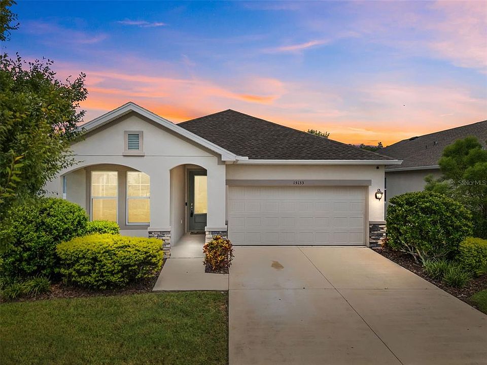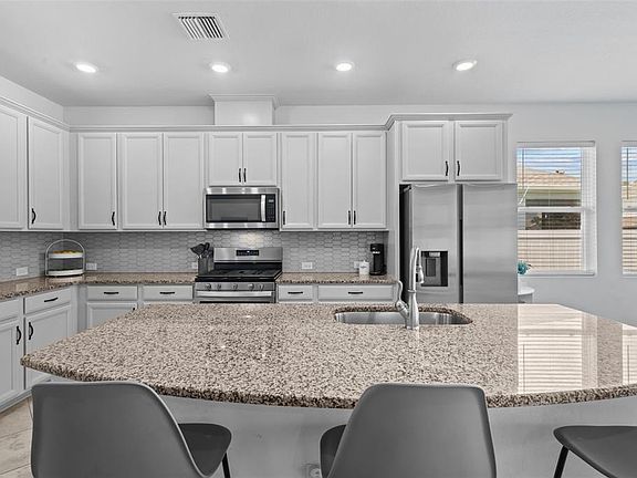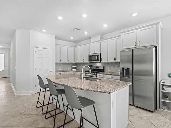 Smart layout, quality upgrades, and one of the best closet setups you’ll find—this David Weekley-built home in Asturia checks all the right boxes. Built in 2020, this 3-bedroom, 2-bath home offers just the right balance of style and functionality. Step inside and you’ll notice tile flooring running through all the main living spaces, making cleanup easy and giving the home a clean, elevated feel from the start. Just off the entry is the first of two secondary bedrooms, tucked beside a full bathroom with a tub/shower combo—making it a perfect guest retreat or home office setup. Continue down the main hallway and you’ll find the second bedroom just ahead, with the drop zone, garage entry, and laundry room located directly across the hall. One of the most impressive upgrades in the home? Both bedrooms feature custom built-in closet systems, adding sleek organization and maximizing storage—something that really makes a difference in a smaller floorplan like this. The laundry room itself is outfitted with upper cabinetry and folding counter space—again, small touches that add real convenience to daily life. Toward the back of the home, the layout opens into a light-filled living room, spacious dining area, and a crisp white kitchen with stainless steel appliances, gas range, upgraded backsplash, and granite-topped island. It’s a space that feels connected and easy to live in. Slide open the back doors and you’ll step onto a covered and fully screened lanai—perfect for morning coffee or winding down at night. The backyard is fully fenced and offers plenty of room to play, entertain, or even add a future pool. The primary suite sits quietly at the back corner of the home and brings in great natural light. The en suite bath includes dual vanities, a walk-in shower, and plenty of cabinet storage—but the true showstopper is the large walk-in closet with a custom built-in system and private access to the laundry room. It’s one of those features that makes everyday life just a little easier—and a lot more enjoyable. Asturia is one of the most sought-after communities in Odessa, offering a resort-style pool, clubhouse, fitness center, playgrounds, dog park, and miles of walking trails. Zoned for top-rated schools and just minutes to the Veterans Expressway, this home combines comfort, convenience, and lifestyle in one neat package. If you’ve been searching for something move-in ready with standout upgrades and a layout that works—this one’s worth a closer look.